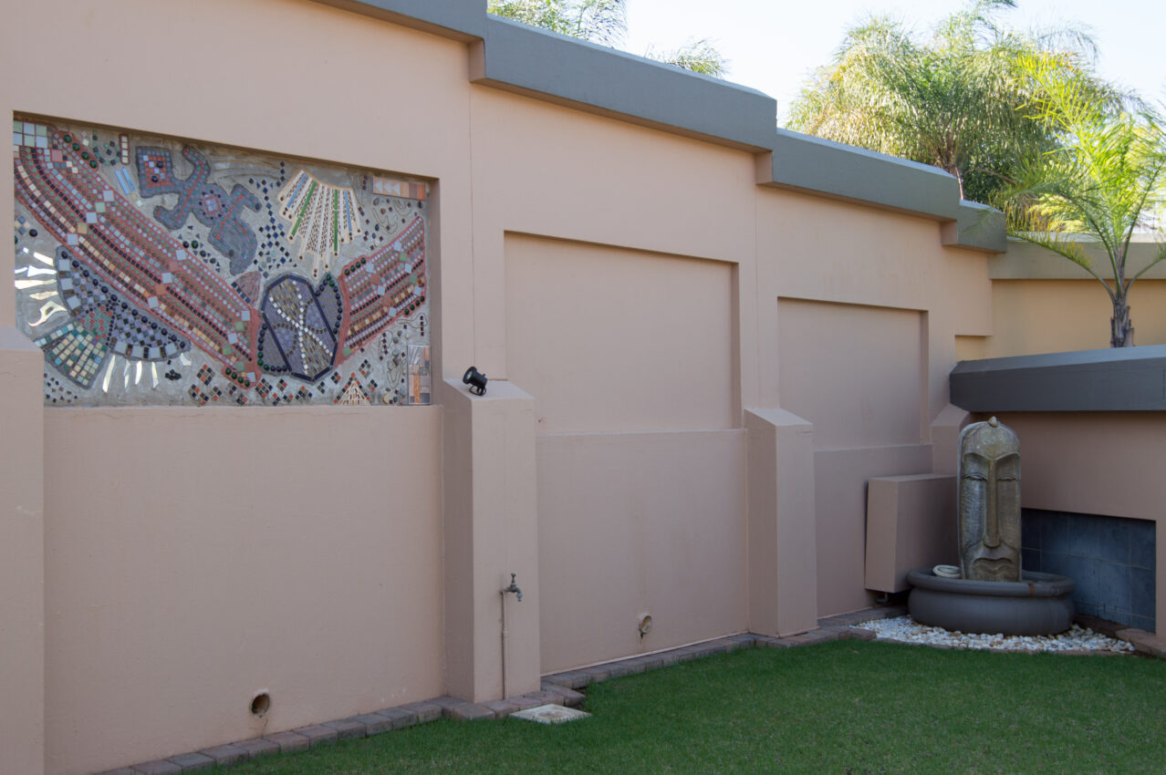 This particular commission required the high surrounding garden walls to have the flavour of Africa with a colourful expression.